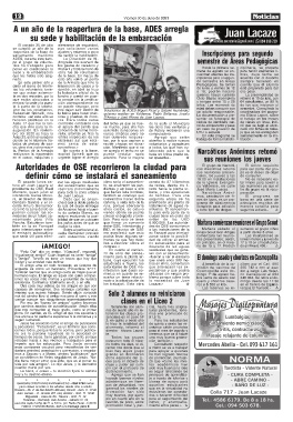 tuvo en Juan Lacaze el del saneamiento que se to, se analizaron las pen- de redes, desde los li- ca Valdense, en calle las reuniones ya que el