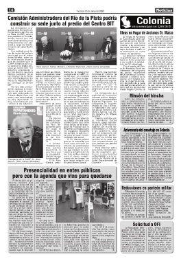 dente, destacó la impor- de la Plata este colector miento de las tareas, las peajes por el uso del ca- Fondo Región Colonia se institución.-