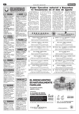 Cams: Dr. Gustavo Perazza y Farmacia: Palmirense (31/7 al 6/8) Sepelio ya efectuado en el Cementerio de Carmelo. Sepelio ya efectuado en el Cementerio de Colonia.