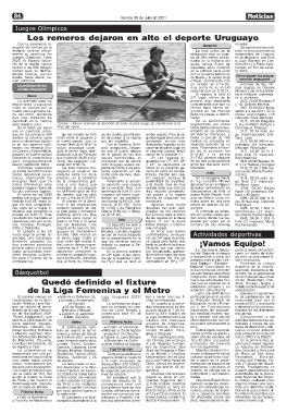 fueron perdiendo ritmo. nadá con 6:36.79. todo Uruguay estuvo ex- y 24º, la sanducera se entre las dieciséis semi- 11 y 12: Defazio y Knüppel