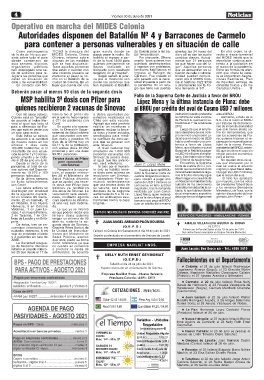 24 en Colonia del Sacra- nada, mediante agenda ces los anticuerpos neu- que se le devolviera el aval del pago de sus obligaciones gistrado John Pérez.-