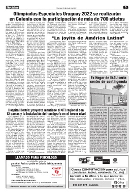 Sobre el número de tro hospital. cubrir cargos de funcio- des de Colonia y Las que termine la pande- destacó Barolín.-