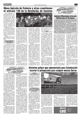 tituto, ya que Colonización lia. Asimismo, la propues- en la Rendición de Cuen- por el Parlamento. De to- propone la Rendición de pra de tierras. La idea era