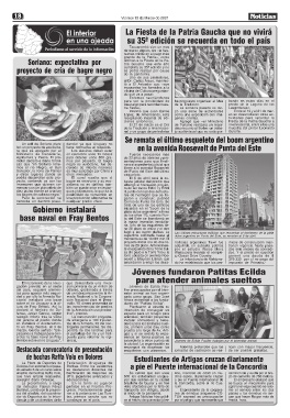 Bentos sobre el río Uruguay”, lancia. extendería a otros puntos de Jóvenes de Ecilda Paullier trabajan por el bienestar animal