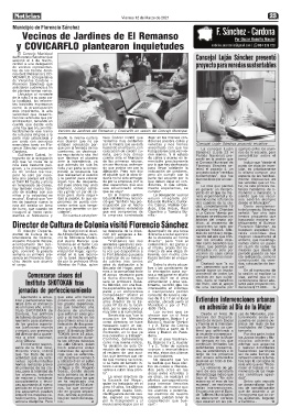 esenciales tanto en Flo- estaban colocando por- por la mejora que se está veredas y nos hemos Concejal Luján Sánchez presentó iniciativa