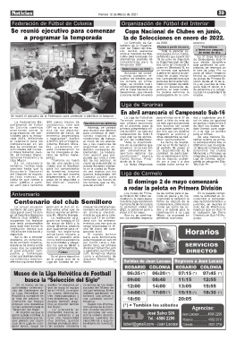 tamental Femenino y la jadas. puesta que está a estu- Carlos Gonnet, Presi- ma de disputa, pudien- Liga de Colonia, partici-