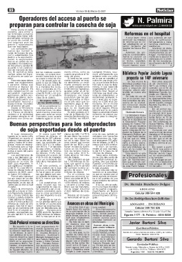 portado, acompañado por (MOA) crecieron. Aportaron de la culminación de la se prepara la calle Uru- Horario: lunes a viernes 9 a 12 y de 14 a 17 hs.