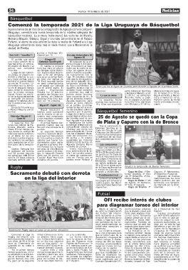 al convertir 20 puntos, Sporting Chris Ortiz des- en los primeros minutos. tol, el sábado a primera Peñarol cierra la fecha