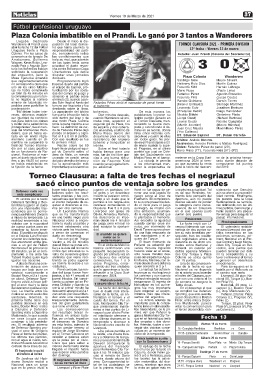 ting no volvió a llevar peli- tiendo su primer gol en Pri- Peñarol revivió recuperarse. El ingreso de de semana se asegura la ton River (V).