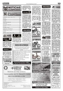 ALQUILERES - VIVIENDAS - TERRENOS Y CAMPOS ...................... Pág. 28 patonas nuevas con llan- les al día, buen estado, 4552 3255 o 4552 1456. 12, 24 o 36 cuotas por
