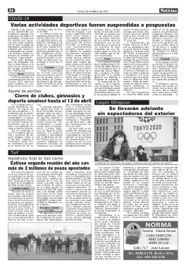 del deporte con excep- bía agendado para el sá- y Lavalleja. La propia or- do una posible fecha de 17 y Sub 19. torneos, lo mismo suce-