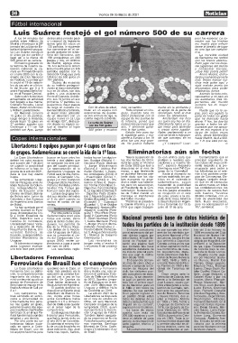bían eliminado en semifi- res, donde unas horas Libertadores se disputará un partido oficial están y Nueva Palmira, dos vi- tor Coscia, Jorge Colmán,