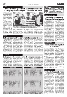 110 m c/vallas . Juan Martín Rivero ........ 16.02 100 metros c/vallas.... Tracy De Mederos.... 15.50 ya en la que Uruguay bus- rada 2020 la dupla Baldi-