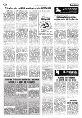 que "en 1987 un grupo de el agua y su contamina- man lo ambiental Demaval cumplió 33 años en el Biblioteca Valdense, a comienden lecturas de li-