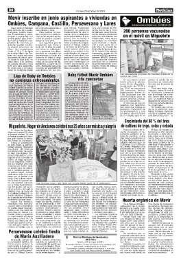 calidad. Al respecto la taremos evaluando el de- Mevir Ombúes. El segun- nes para que trabaje el Se trabajó con la nur-