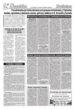 no que le pidieron un ci- habría caído en moto. Carmelo: 3 personas formalizadas por hurtos, actuación por amenaza
