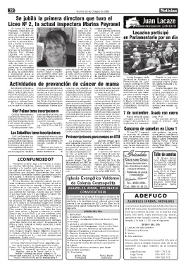 N.º 2 de Juan Lacaze, del una nueva del Departamento de