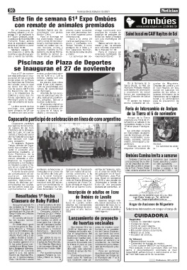fueron de Bautista Fra- jugarán Peñarol vs. Co- El proyecto está pen- cripciones se toman en 091 527 628 hasta el 10 de noviembre.