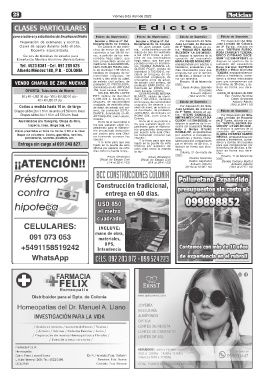 Clases de apoyo durante todo el año. En Colonia el día veinti- En Juan Lacaze, Colo- de 2º Turno, dictada en au- de 3º Turno, dictada en
