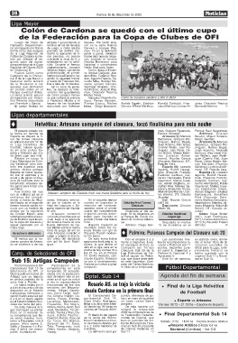 Artigas que se impuso dad de haber sido el pri- Dptal. Sub 14 Agenda del fin de semana
