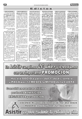 Rosario, 23 de agosto de LADO, domiciliado en RIVE- ADOLFO DANIEL JOUR- TE CABRERA debe de decir Cin- cédula de identidad 3.995.642- en forma sus derechos.