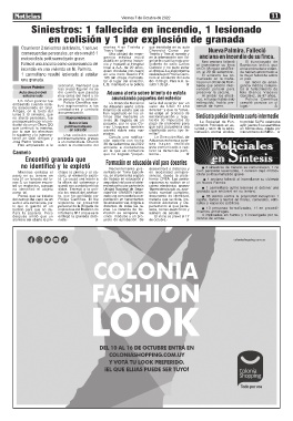 una granada. En el lugar del siniestro, dio 0.00 g/l. Para A.A. re- municado en la maña- el piso.