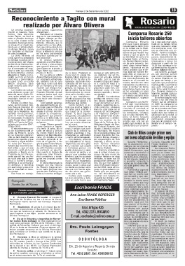 allegados a Tagito, la invi- Por su parte el artista mural con mi amigo Se- ca, soñamos con un Ro- sario 250, un poco por el zó, son abiertos; señaló