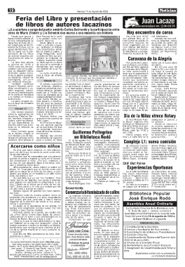 mentido y peor, hemos mentido. Plantearon varios temas, pérdidas que están te- E. Rodó de Juan L. Lacaze, convoca a