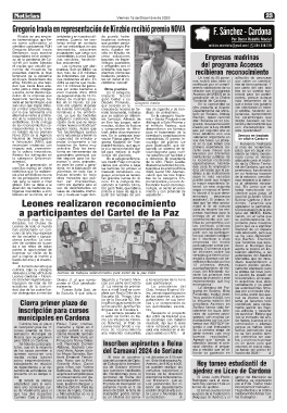 cio Sánchez registró la par- Distrito J1 al que corres- Segunda y Tercera Men- a los escolares de la zona reconocimiento que hoy lo burocrático. Al respec-