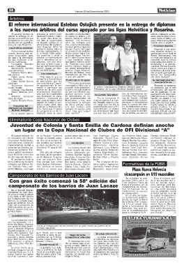 campeonato de los barrios de Juan Lacaze Nueva Helvecia en la ción, también ante De-