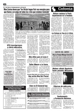 cial cívica. Funcionarán los Ba- han llamado “Más útiles liceal del 13 al 28 de fe- banda y con artistas in- diante con el profesio-