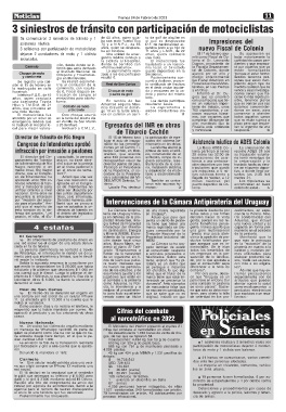 fensa del peatón, “¿el el ámbito del legislativo tería del Uruguay traba- en Uruguay”. todos lados y las firmas cial de la Policía. Mos-