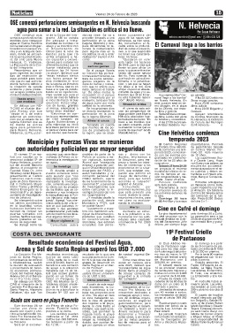 "desde el 5 de enero "Estuvimos en con- perforación en la zona agua potable para Nueva Se beneficia la compar- Apoyan: Intendencia
