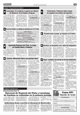 de las ligas de Tarariras y se del fin de semana pa- Federico Viera, cancha ze, a partir de las 13 hs.