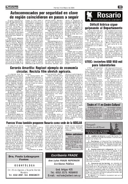 tir de material reciclado teriales, pero la inocuidad, llen proyectos de econo- sa de Rosario cumple con remate, el sábado 11 a nuestra ciudad.