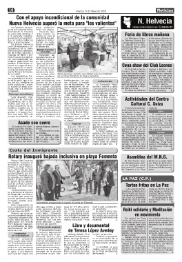 mos que pedir 300 más pleja. Acá compramos le- cia y Valdense, y el Sr. cieron muchísimos metros una charla a cargo del El sábado 27 a las