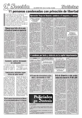 Funcionarios Judiciales logran de daño y un delito de le- de hurto a la pena de 5 El lunes 8 un vecino meses de prisión.-
