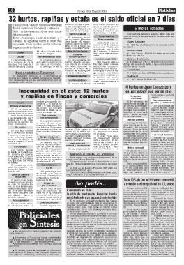 especialmente en Rosario. lunes 15 con el tablero da- la seccional 4ª haber sido en calle 1.