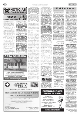 permuto por casa mis- MONTEVIDEO, Apto 4 dor- pleno centro de Juan La- JUAN LACAZE, Oportuni- (15-9 al 29-9 / 03) Edicto de Matrimonio