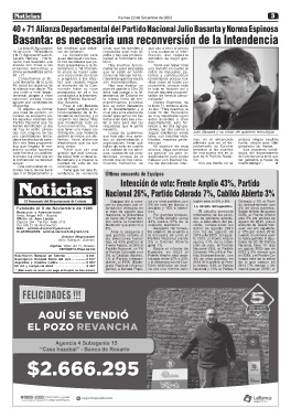 Imprime Tintas del Yi. Durazno. Frente Amplio, el 26% al gana 1%. ción de voto, el Partido Nacional, tiene 1% más