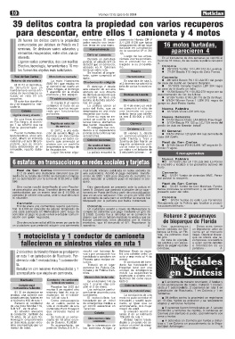 Ligaron varios comercios, dos con rapiñas. policial, el sábado 6/1 se tes el vehículo fue en- hurto de 16 motos, de las cuales la policía recuperó