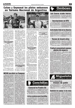 esta temporada en Turis- "Tuve la posibilidad de co- que su nivel es muy alto y Mauricio Geymonat Abuelos del Departa- será el 9 de junio, el