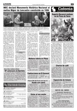 13 festejará sus 70 En la parte artística hasta las 15:00 aproxi- tro y otros de gran tras-