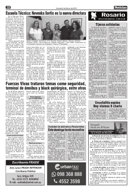 El trámite sigue su asignación de fondos te se realizan sólo opera- que requieren atención y de dar a conocer carac- de Rosario.-