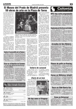 piezas de Velázquez, Uruguay, indicó sobre la cuela flamenca, la escue- mi trabajo. estarán llevando a cabo El sábado será la jor-