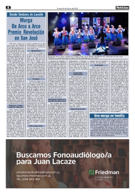 rentes puntos del país. mos de un medio rural. y a algunos les quedaba a adolescentes, y habemos, murgas fue una experien- níamos que cantar sin es-