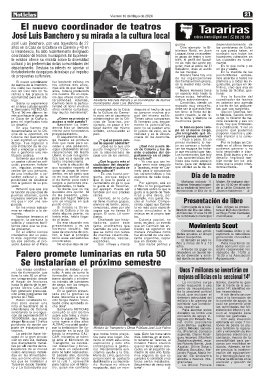 Sobre su experiencia Carmelo tiene la particu- municipales José Luis Banchero Conchillas, siendo un es ordenar una agenda