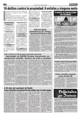 contra el mayor retirado Morales se lo exculpó por de inconstitucionalidad rados delitos de priva- 1 solo siniestro de tránsito se reportó: el con-