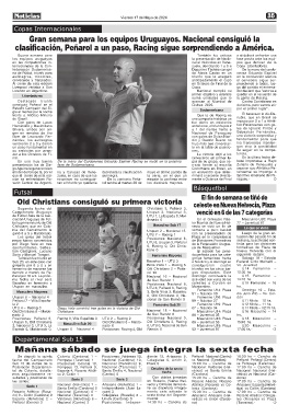 ganó 6 a 3 a Maldonado. UTU 7 – Racing 1 con la presentación de Luego de la gran ac-