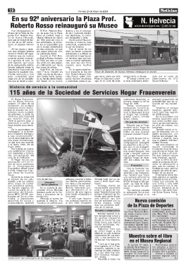Deporte ha quedado tota- ción Física titulado en tuvo presente la hija del Plaza de Deportes de Nueva Helvecia reinauguró el museo